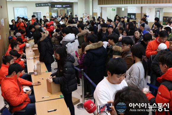 롯데자이언츠 선수들이 6일 오전 10시 30분 고신대학교복음병원 장기려기념암센터에서 팬 사인회를 하고 있다.(사진제공=고신대학교복음병원) 고신대학교복음병원(병원장 임학)은 6일 오전 10시 30분, 병원 장기려기념암센터 중앙로비에서 롯데자이언츠 팬 사인회를 겸한 환아 위로연과 후원... 2017-01-06