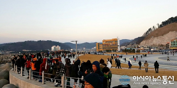 1일 경북 영덕군 강구면 해파랑공원을 찾은 새해 해맞이 인파.(사진제공=영덕군청) 경북 영덕군(군수 이희진)이 연말연시 '영덕-상주'간 고속도 개통 특수를 톡톡히 누린 것으로 나타났다. 영덕군은 지난해 31일과 새해 첫날인 1일 해맞이를 즐기고 영덕대게를 맛보기 위해 영덕을 찾... 2017-01-05