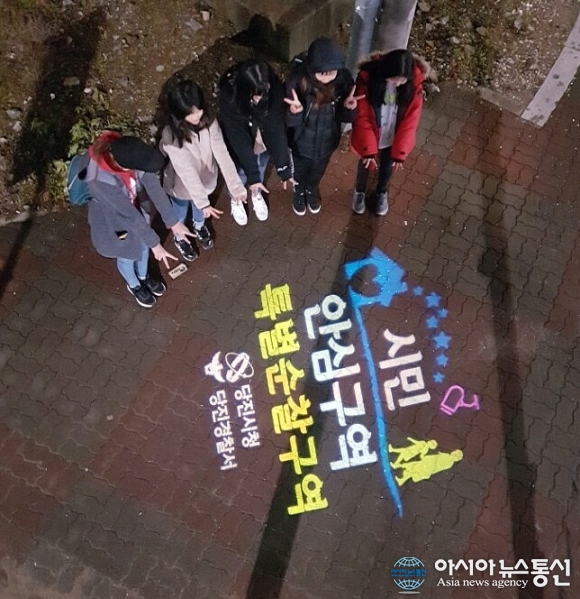 충남 당진시가 학교주변, 여성안심구역 등에 설치한 범죄예방디자인(CPTED) 로고젝터.(사진제공=당진시청) 충남 당진시가 학교주변과 공원, 여성안신구역 등 관내 우범지역 22개소에 설치된 방범용 CCTV와 연계해 범죄예방디자인(CPTED)의 로고젝터를 시범 운영에 들어가 귀추가 주목된다. 5... 2017-01-05
