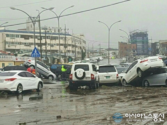 지난해 10월 제18호 태풍 차바의 영향으로 울산지역 곳곳에 주요 간선도로가 침수되고 주택 담장이 무너지는 등 사고가 발생했다./아시아뉴스통신DB 4일 오후 2시 울산 중구 태화종합시장에 늠름한 국군장병 10여명이 80여만원 상당의 떡 상자 수십여 박스를 들고 방문했다. 이들은 지난해 1... 2017-01-04