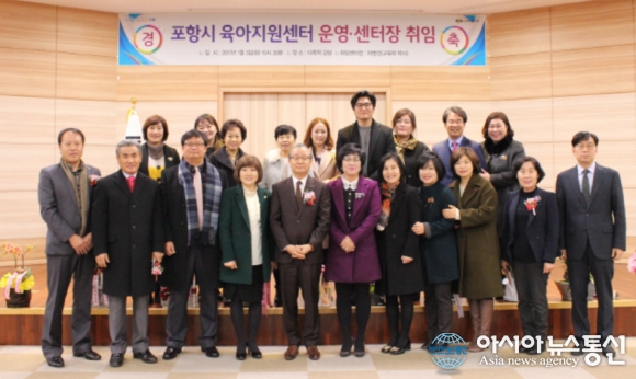 3일 선린대가 포항시 평생학습원 2F 다목적홀에서 총장 및 포항시의회 의원, 지역 기관단체장, 관내 보육 관계자 등 100여명이 참석한 가운데 육아종합지원센터 기념식과 센터장 취임식을 개최한 후 단체사진을 찍고 있다.(사진제공=선린대) 선린대학교(총장 변효철)는 3일 포항시 평생학습원... 2017-01-04