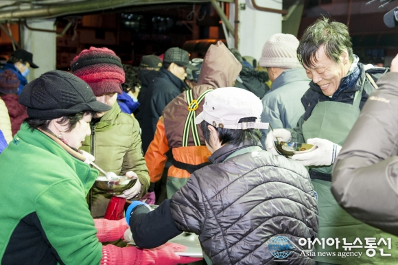 4일 새마을운동중앙회 울릉군지회가 2017년 새해맞이 세시음식 떡국나눔행사를 저동위판장에서 갖고 있다.(사진제공=울릉군청) 새마을운동중앙회 경북 울릉군지회는 4일 2017년 새해맞이 세시음식 떡국나눔행사를 저동위판장에서 가졌다. 이번 행사는 전국적으로 AI가 확산되면서 정유년(... 2017-01-04