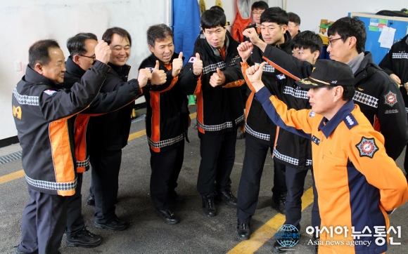대전중부소방서(서장 신흥섭)는 4일 용운119안전센터에서 신흥섭 서장과 센터직원들이 참석한 가운데 정유년 새해를 맞아 ‘소방이념과 119정신’을 바탕으로 시민에게 더욱 신망 받는 선진 중부소방서가 될 수 있도록 함께 노력할 것을 다짐했다(사진제공=대전중부소방서) 2017-01-04
