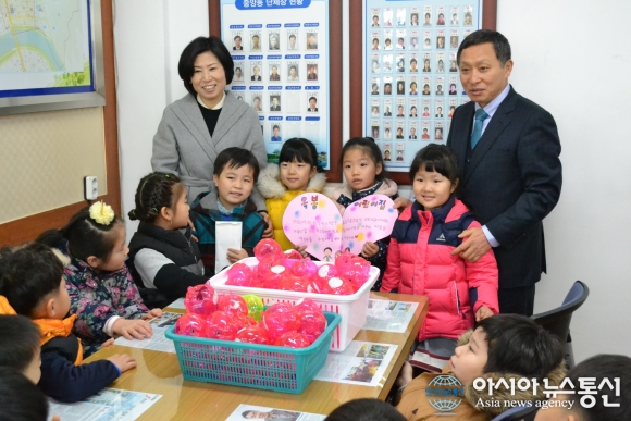 옥봉어린이집 원아와 교직원 중앙동에 성금 기탁 경남 진주시 옥봉어린이집(원장 이보희) 원아와 교직원들이 4일 오전 10시30분 중앙동 행정복지센터를 방문해 어려운 이웃에게 써 달라며 성금 67만원을 기탁했다. 옥봉어린이집에서는 어린이들에게 좋은 습관을 기르고 주위에 어려운 이... 2017-01-04