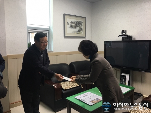 목포제일정보중고등학교는 바자회를 통해 모은 100만원을 불우이웃에게 써달라며 김선희 연동장(오른쪽)에게 성금을 전달했다.(사진제공=목포시청) 성인들이 공부하는 목포제일정보중고등학교(교장 김성복)가 최근 연동주민센터(동장 김선희)를 방문해 지역의 어려운 이웃을 써달라며 불... 2017-01-04