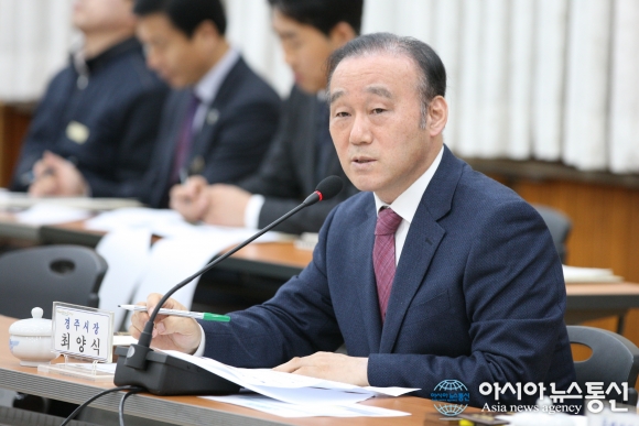 4일 최양식 경북 경주시장이 새해 첫 읍면동장 회의를 주재하며 신임 읍면동장에게 시민을 섬기는 현장행정을 당부하고 있다.(사진제공=경주시청) 최양식 경북 경주시장은 4일 시청 대회의실에서 정유년(丁酉年) 새해 첫 읍면동장 회의를 주재하고, 올해 시정 방향에 대한 방침을 전달했다. ... 2017-01-04