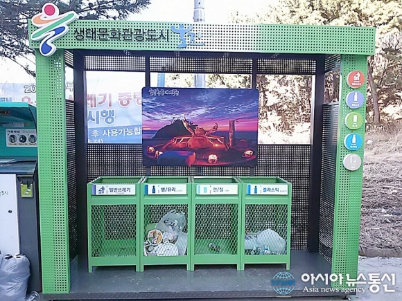 경북 울진군 죽변면사무소가 대규모 원룸촌으로 변모한 죽변면 후정리 옛 동아사택 단지에 조성한 '개방형 생활쓰레기집하소'./아시아뉴스통신=남효선 기자 생활환경을 보호하기 위한 경북 울진군(군수 임광원)의 시책이 돋보인다. 죽변면사무소(면장 전찬억)는 최근 대규모 원룸... 2017-01-04