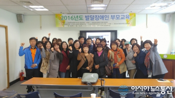 2016년도 발달장애인 부모 교육 프로그램 시행 참가자 기념촬영 (사진제공=장애인학부모회 진주시지부) 한국장애인학부모회 진주지부는 장애아 학부모를 대상으로 시행한 2016년 교육 프로그램의 성과가 컸다고 3일 밝혔다. 한국장애인부모회 경남지회(지회장 변환숙) 산하 경상남도장애... 2017-01-03