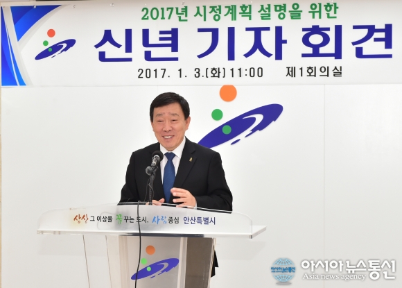 3일 오전 제종길 안산시장이 정유년 새해 첫 기자회견을 하고 있다.(사진제공=안산시청) 제종길 안산시장은 3일 오전 제1회의실에서 2017년 정유(丁酉)년 새해 첫 기자회견을 개최했다. 제 시장은 우선 "지금 우리나라는 국민의 힘으로 낡은 부패의 사슬을 끊고 저의롭고 당당한 나라도 ... 2017-01-03
