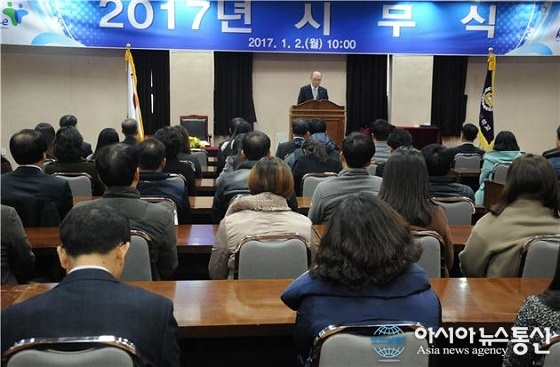 2일 한국교원대학교가 교원문화관 국제회의실에서 2017 시무식을 가진 가운데 류희찬 총장(맨앞 연단)이 신년사를 전하고 있다.(사진제공=한국교원대학교) 한국교원대학교는 2일 교원문화관 국제회의실에서 류희찬 총장을 비롯한 교무위원과 교직원 200명이 참석한 가운데 시무식을 가졌다. ... 2017-01-03