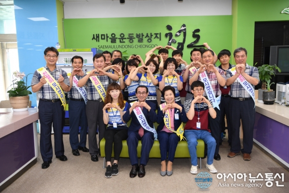 3일 경북 청도군청 민원실에서 이승율 군수(앞줄 왼쪽 두번째 )와 직원들이 기념촬영을 하고 있다.(사진제공=청도군청) 경북 청도군은 지난 한해 군민을 섬기는 봉사정신으로 민원처리기간 단축과 고객감동 행정추진으로 '아름다운 생명고을 청도'의 면모를 다졌다고 3일 자평했다. ... 2017-01-03