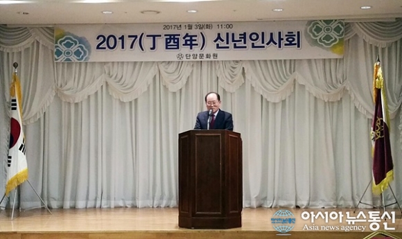 3일 충북 단양군 대명리조트에서 단양문화원 신년인사회가 열린 가운데 류한우 단양군수가 인사말을 하고 있다.(사진제공=단양군청) 충북 단양문화원이 3일 신년인사회를 개최했다. 대명리조트에서 열린 이날 행사에는 류한우 단양군수와 조선희 단양군의회의장, 정영오 단양경찰서장, ... 2017-01-03