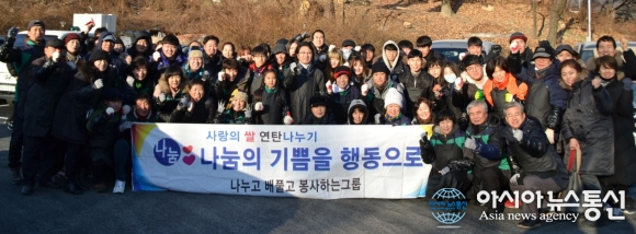 '사랑의 쌀 연탄나누기' 행사 기념모습.(사진제공=세계평화사랑연맹) 세계평화작가로 널리 알려진 한한국 평화작가(세계평화사랑연맹 이사장)가 나누고 베풀고 봉사하는 그룹 회원들과 함께 지난해 12월 30일 서울 성북구 정릉3동 지역에서 2016년도 마지막 봉사인 '사랑의 쌀 연탄... 2017-01-02