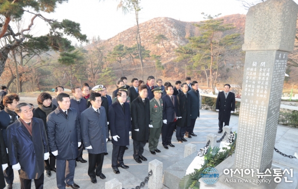 2일 이강덕 포항시장을 비롯해 문명호 포항시의회 의장, 보훈단체장 등이 덕수공원 내 충혼탑 광장에서 '2017년 신년 참배식'을 갖고 있다.(사진제공=포항시청) 경북 포항시는 2일 덕수공원 내 충혼탑 광장에서 '2017년 신년 참배식'을 가졌다. 이날 이강덕 포항시장을 비롯해 박... 2017-01-02