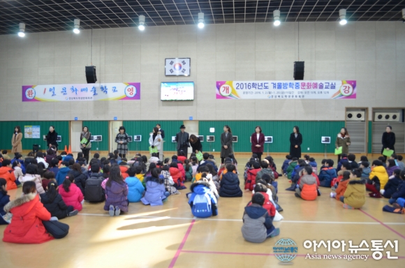 2일 경북도학생문화회관이 초.중학생 500여명과 학부모가 함께 참석한 가운데 2016학년도 겨울방학중문화예술교실 개강식을 열고 있다.(사진제공=경북도학생문화회관) 경북도학생문화회관(관장 박병길)은 2일 초.중학생 500여명과 학부모가 함께 참석한 가운데 2016학년도 겨울방학중문화예술... 2017-01-02