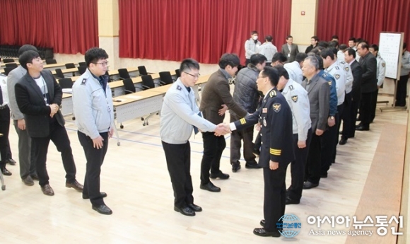 2일 김종범 대전동부경찰서장이 경찰서 대회의실에서 직원들과 새해 인사를 나누고 있다.(사진제공=대전동부경찰서) 대전동부경찰서(서장 김종범)는 2일 경찰서 대회의실에서 전 직원이 참석한 가운데 2017년 시무식을 열었다. 이날 시무식은 경찰헌장 낭독, 경찰청 신년 영상 메시지, 경... 2017-01-02