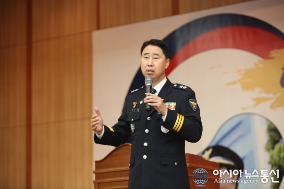2일 충남경찰청 대강당에서 열린 2017년 시무식에서 김재원 청장이 말하고 있다.(사진제공=충남경찰청) 충남경찰청(청장 김재원)은 2일 본청 대강당에서 전직원이 참석한 가운데 2017 정유년 시무식을 열었다. 김재원 청장은 시무식에서 "'충남경찰은 오직 도민이 원하는 길로 간다'... 2017-01-02