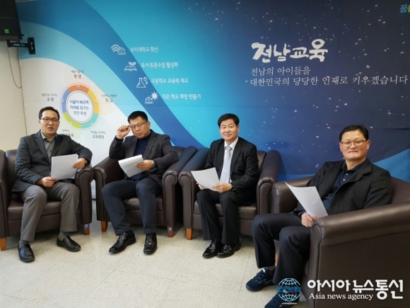 지난달 26일 단행된 전남도교육청 지방공무원 인사에 대해 김두헌 호남교육신문 기자, 신영삼 이뉴스투데이 기자, 고정언 아시아뉴스통신 기자, 장철호 프라임경제 기자(왼쪽부터)가 뒷담화를 하고 있다.(사진제공=전남도교육청) 김두헌 : 병신년이 저물고 정유년 새해가 밝았습니다. 기자 ... 2017-01-02
