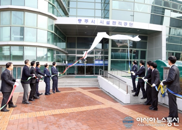 2일 충북 충주호암체육관에서 참여한 관계자들이 충주시시설관리공단 현판식을 진행하고 있다.(사진제공=충주시청) 충북 충주시시설관리공단이 2일 오후 2시 호암체육관에서 공단 출범에 따른 현판식을 열고 본격적인 운영에 들어갔다. 이날 현판식에는 조길형 충주시장과 이종갑 충주... 2017-01-02