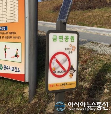 금강신관공원 금연구역 표지판.(사진제공=공주시청) 공주시(오시덕 시장)가 흡연자의 금연을 돕고 담배연기 없는 건강하고 쾌적한 환경을 만들고자 적극적인 금연 분위기 조성에 나섰다. 시는 금연구역 내 시각적인 홍보효과를 극대화하고자 공주종합버스터미널 택시승강장과 금강신관... 2017-01-02