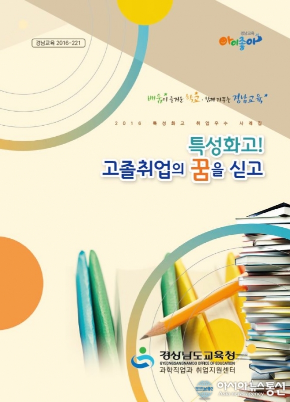 경남도교육청이 ‘2016년 특성화고 취업우수 사례집’으로 발간한 ‘특성화고! 고졸 취업의 꿈을 싣고’ 표지.(사진제공=경남교육청) 경남도교육청은(교육감 박종훈)은 ‘2016년 특성화고 취업우수 사례집’인 ‘특성화고! 고졸 취업의 꿈을 싣고’를 발간해 모든 특... 2017-01-02