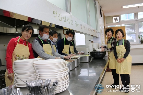 2일 충북 보은군의회 고은자 의장(오른쪽 두번째)을 비롯한 군의회 의원들이 시무식을 마친 뒤 보은군노인장애인복지관을 찾아 점심 배식 봉사활동을 벌이고 있다.(사진제공=보은군의회) 충북 보은군의회가 새해 배식 봉사를 시작으로 새해 첫 의정활동에 들어갔다. 2일 보은군의회에 따... 2017-01-02
