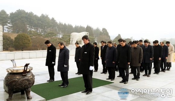 2일 송하영 한밭대 총장을 비롯한 주요보직자, 교수, 직원, 학생대표 등이 국립대전현충원에서 순국선열과 호국영령에 대한 참배를 하고 있다.(사진제공=한밭대학교) 한밭대학교(총장 송하영)가 2일 국립대전현충원을 방문해 현충탑에 분향하고 순국선열과 호국영령에 대한 참배로 새해를 ... 2017-01-02