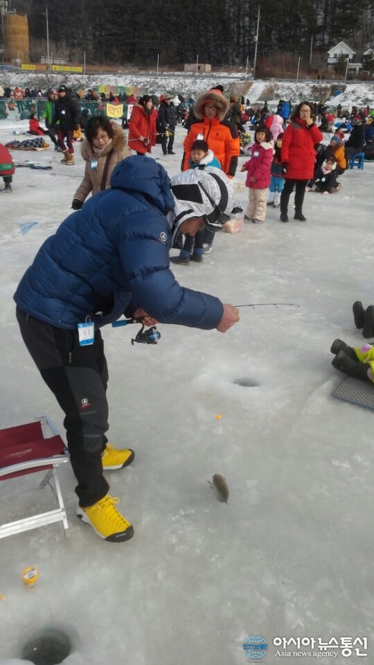 지난해 강원도 평창군 오대천 일원에서 '평창송어축제'가 열려 많은 인파가 몰린 가운데 한 관광객이 송어를 잡고 기뻐하고 있다./아시아뉴스통신DB 강원 평창군에서는 ‘우리는 겨울에 올림픽 개최도시 평창으로 간다’라는 슬로건으로 오는 31일 제1축제장인 평창송어축제가 진부면 오대천 일원에서 개... 2016-12-29