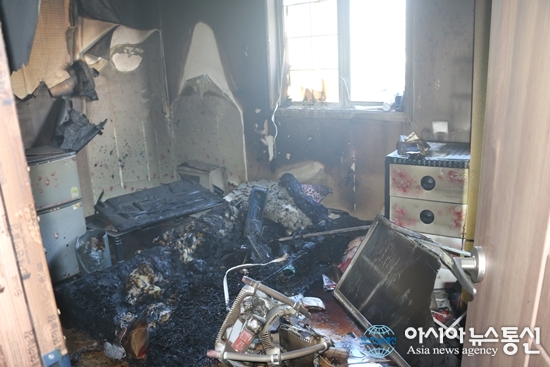 영월군 영월읍 영흥리 소재 주택가 2층 화재 현장 모습.(사진제공=영월소방서) 강원 영월군애서는 29일 오전 10시 13분쯤 영월읍 영흥리 소재 주택가 2층에서 화재가 발생해 군청 씨름단 합숙소, 매트리스 등 가재도구 일부소실 됐다. 한편 영월소방서 119구조대 등 출동 후 20여분만에 완진... 2016-12-29