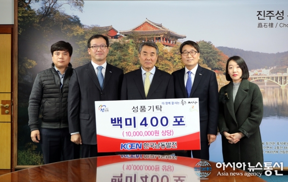한국남동발전이 진주시 ‘좋은세상’에 쌀을 기탁하는 모습.(사진제공=남동발전) 한국남동발전(장재원 사장)은 28일 연말을 맞아 직원들이 기부한 비용 1000만원으로 구입한 쌀 400포(10kg)를 진주시에 기탁했다. 이날 기탁한 물품은 ‘좋은세상’을 통해 관내 어려운 가정과 저... 2016-12-29