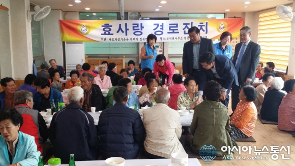 13일 경기 평택시 진위면 바르게살기위원회(위원장 송인선)는 진위면 한 음식점에서 120여명의 노인들을 대상으로 ‘孝사랑 경로잔치’를 열었다.(사진제공=평택시청) 경기 평택시 진위면 바르게살기위원회(위원장 송인선)에서는 13일 진위면 한 음식점에서 120여명의 노인들을 대상으로 ‘孝사랑 경로잔치’를 열... 2016-10-13