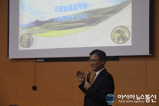 13일 충북대학교 누에산업RIS산업단이 마련한 ‘우리나라 양잠과 곤충산업의 현재와 미래' 특강에서 국립농업과학원 김두호 생물부장이 강의를 진행하고 있다.(사진제공=충북대학교) 충북대학교(총장 윤여표) 누에산업RIS산업단은 13일 자연대학 강의실(S1-6-107)에서 ‘우리나라 양잠... 2016-10-13