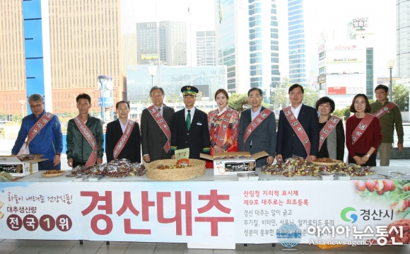 12일 서울역 출구에서 이강연 경산시농업기술센터소장을 비롯한 조한걸 농협중앙회 경산시지부장, 최병영 재경향우회장을 비롯한 향우회원과 대추아가씨 등이 경산대추의 우수성과 소비촉진을 위한 홍보 및 나눔행사를 갖고 있다.(사진제공=경산시청) 경북 경산시(시장 최영조)는 12일 서... 2016-10-13