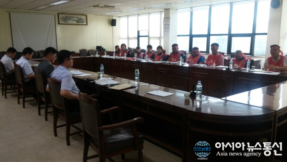 지난 5일, 전남 광양농협 본점 2층 대회의실에서 사측과 노조측이 협상을 진행하고 있는 모습./아시아뉴스통신=조용호 기자 지난달 26일부터 파업에 돌입한 전남 광양농협 노동조합이 지난 10일자로 업무에 전면 복귀했다. 하지만 노조의 업무복귀가 협상타결에 따른 것이 아니라 사측의 ... 2016-10-13