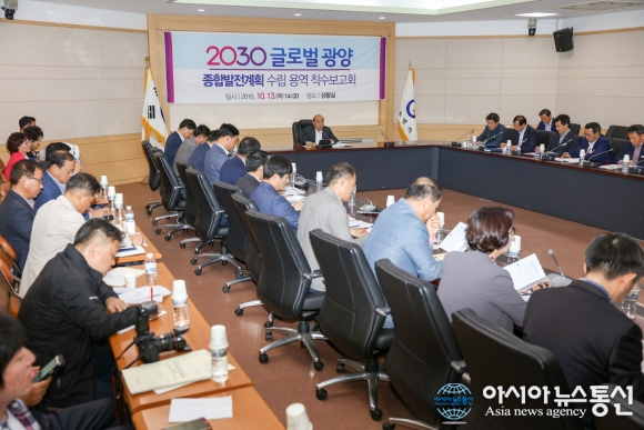 2030 글로벌 광양종합발전계획 수립용역 착수 보고회를 개최하고 있다.(사진제공=광양시청) 전남 광양시가 향후 15년(2016년~2030년)간 미래 청사진 그리기에 나섰다. 광양시는 이달 13일 시청 상황실에서 시의 원대한 도약과 미래 먹거리 창출을 주제로 ‘2030 글로벌 광양종합발전계획 수... 2016-10-13