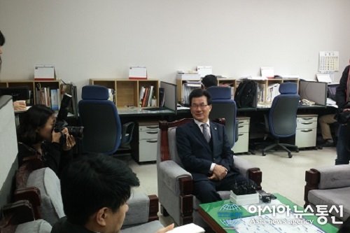 13일 이시종 충북지사는 충북도청 브리핑실을 방문해 KTX세종역 신설 저지를 위해서는 도민들의 단합이 필요하다고 강조했다./아시아뉴스통신=백운학 기자 이시종 충북지사는 13일 “KTX 세종역 신설 문제 해결을 위해서는 도민들이 단합된 모습으로 반대 목소리를 내야 한다”고 강조... 2016-10-13