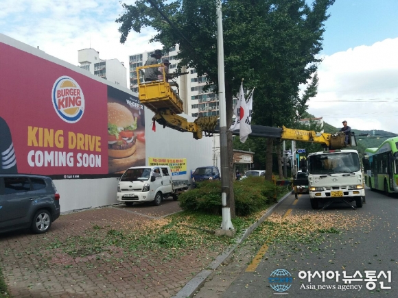 창원시 마산회원구가 주요 도로변의 은행나무 열매 털기 작업을 하고 있다.(사진제공=창원시청) 경남 창원시 마산회원구(구청장 조철현)는 특유의 냄새로 인해 시민들에게 불편을 주는 은행나무 열매 털기 작업에 나서고 있다고 밝혔다. 은행 열매에는 빌로볼과 은행산이라는 독성 성분... 2016-10-12