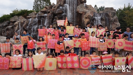 12일 충북 청주 내곡초등학교 학생들이 경기 용인 한국민속촌에서 가을 현장체험학습으로 염색체험을 한 뒤 결과물을 들어보이며 기념촬영하고 있다.(사진제공=청주교육지원청) 충북 청주 내곡초등학교(교장 박순권)는 12일 병설유치원생부터 전교생을 대상으로 경기 용인 한국민속촌으로 ... 2016-10-12