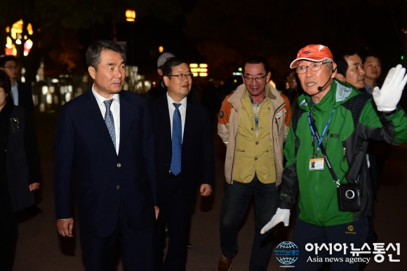 경남 시장·군수들이 진주유등축제를 관람하는 모습.(사진제공=진주시청) 김동진 통영시장을 비롯한 경남의 시장·군수 6명이 11일 저녁 진주시에서 개최되는 남강유등축제장을 방문하고 유등의 아름다움에 놀라움을 표했다. 이번 방문은 경남시장군수협의회장인 이창희 진주시... 2016-10-12