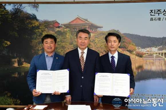 진주국제농식품박람회-한우협회 협약 체결 모습.(사진제공=진주시청) 경남 진주시와 (사)전국한우협회 부산경남도지회(지회장 강호경)는 12일 오전 10시 진주국제농식품박람회 축산분야의 지속적인 성장원동력 확보와 상호교류, 한우산업의 발전을 위해 협약을 체결했다. 이번 협약서에... 2016-10-12