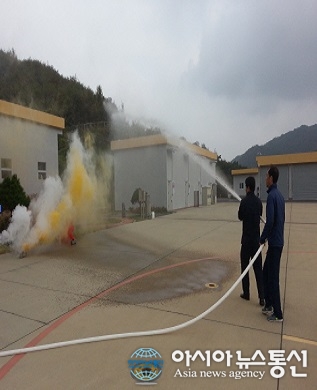 합동소방훈련 모습.(사진제공=청양소방서) 충남 청양소방서는 12일 청양군 남양면 소재 청양산림항공관리소에서 재난 대처능력 향상 및 시설 관계인의 안전관리 능력 제고를 위한 무각본 합동소방 훈련을 실시했다. 이날 실시한 무각본 훈련은 사전에 ... 2016-10-12
