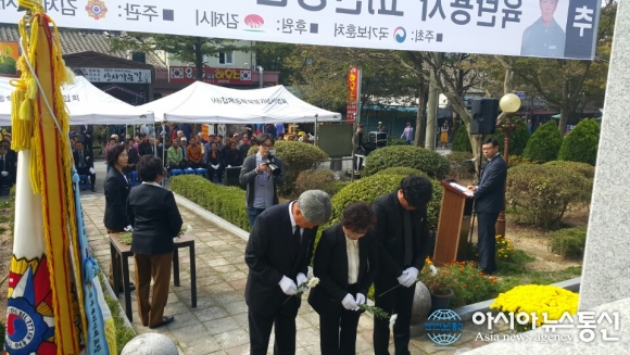 안영권 하사 추모제 장면(사진제공=전북서부보훈지청) 전북서부보훈지청(지청장 이우실)이 12일 우리고장 출신 백마고지 3용사 안영권 하사 추모제를 개최했다. 김제시 재향군인회 주관으로 열린 이날 행사는 이건식 김제시장, 나병문 시의회 의장, 이우실 전북서부보훈지청장, 김효순 김... 2016-10-12