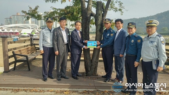 보청천변ㆍ태봉산ㆍ남산 산책길에 안심번호판 부착