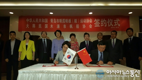 지난 9일 최미순 목포시 요트협회장(왼쪽)과 왕보기 청도시 범선협회 상무부회장이 업무협약서에 사인을 하고 있다.(사진제공=목포시청) 전남 목포시가 중국 청도시를 방문해 본격적인 해양레저스포츠교류에 발벗고 나섰다. 이인곤 부시장을 단장으로 한 목포시 대표단은 지난 9일 청도... 2016-10-12