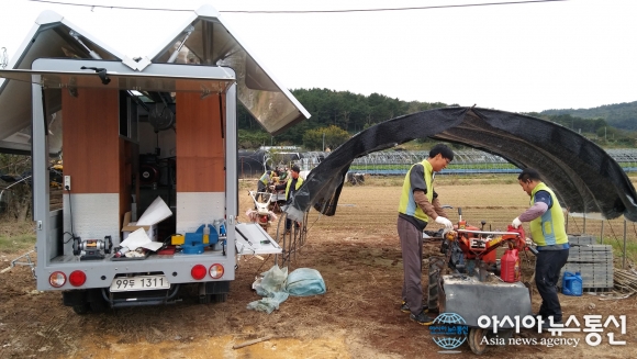 봉사단원 18명, 침수피해 농기계 무상 수리