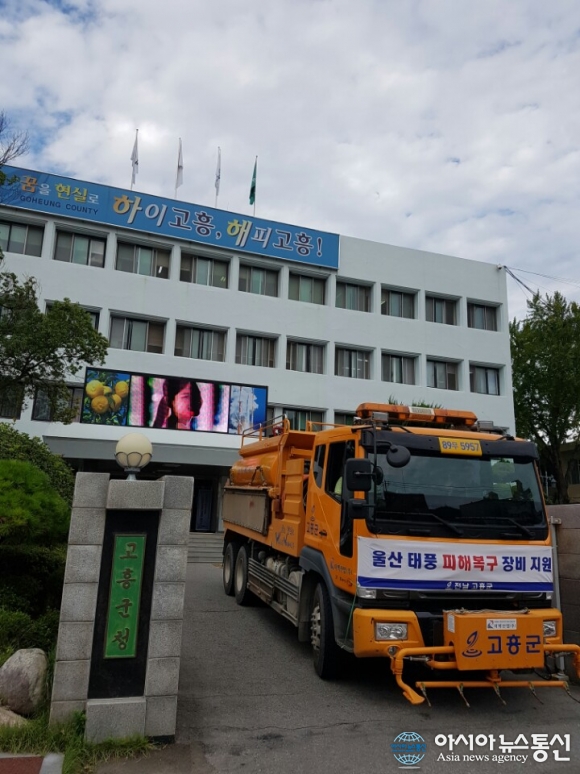 울산지역 피해복구 현장에 지원될 중장비(다목적덤프)모습.(사진제공=(고흥군청) 전남 고흥군(군수 박병종)은 태풍 ‘차바’로 큰 피해를 입은 울산시의 조속한 복구를 위해 지난 11일 여성단체 자원봉사단 파견에 이어 같은 날에 군 보유 중장비(다목적덤프) 1대와 인력 2명을 복구현... 2016-10-12