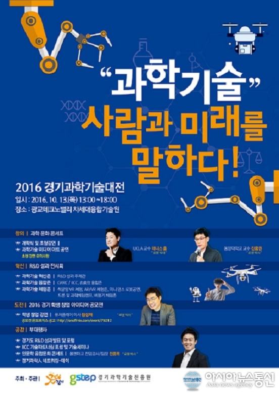경기과학기술대전에서는 도내 산학연 연구개발 성과, 의식주 관련 첨단기술 등을 체험할 수 있다.(사진제공=경기도청) 경기도가 13일 광교테크노밸리 차세대융합기술연구원에서 '2016 경기과학기술대전'을 개최한다. 도가 주최하고 경기과학기술진흥원이 주관하는 이번 박람회는 ... 2016-10-12