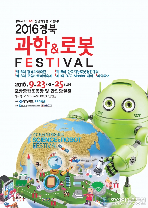 '2016 경북 과학.로봇 페스티벌' 포스터.(사진제공=포항시청) 경북 포항시는 오는 23일부터 25일까지 3일간 포항종합운동장 및 만인당 일원에서 '2016 경북 과학&로봇 페스티벌'을 개최한다고 19일 밝혔다. 이번 행사는 경북도와 포항시가 주최하고, 포항... 2016-09-19