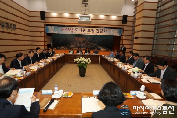 19일 포항시청 대회의실에서 이강덕 시장을 비롯 포항시 간부공무원들과 장두욱 경북도의회 부의장을 비롯 지역출신 도의원들이 2017년 도비 확보를 위한 '도의원 초청간담회'를 갖고 있다.(사진제공=포항시청) 경북 포항시는 19일 포항시청 대회의실에서 ... 2016-09-19