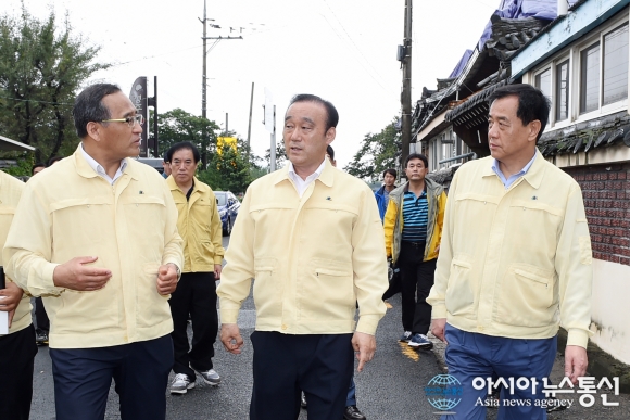 18일 최양식 경주시장(왼쪽)이 홍윤식 행자부 장관에게 기와 보수 등 국비지원을 건의하고 있다.(사진제공=경주시청) 지난 9.12 강진으로 경북 경주시는 많은 피해가 발생했다. 이에 경주시는 더이상 지진 공포에서 머물지 않고 민관군이 협력해 피해 복... 2016-09-19